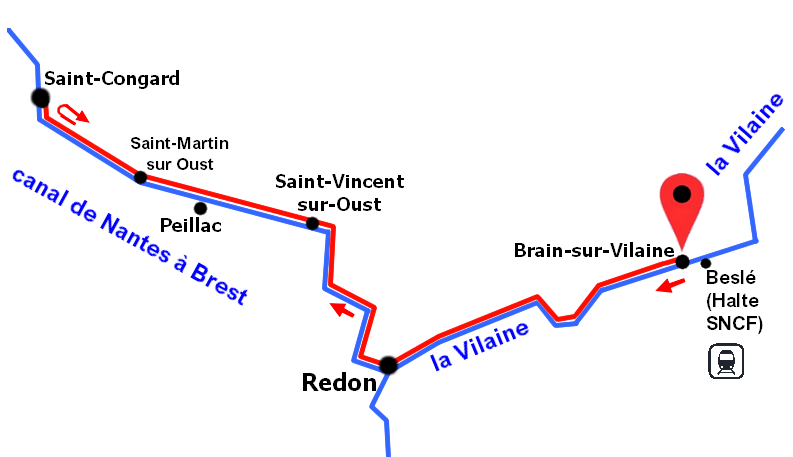 | 18 km | Redon | 40 km | Saint-Martin-sur-Oust |
