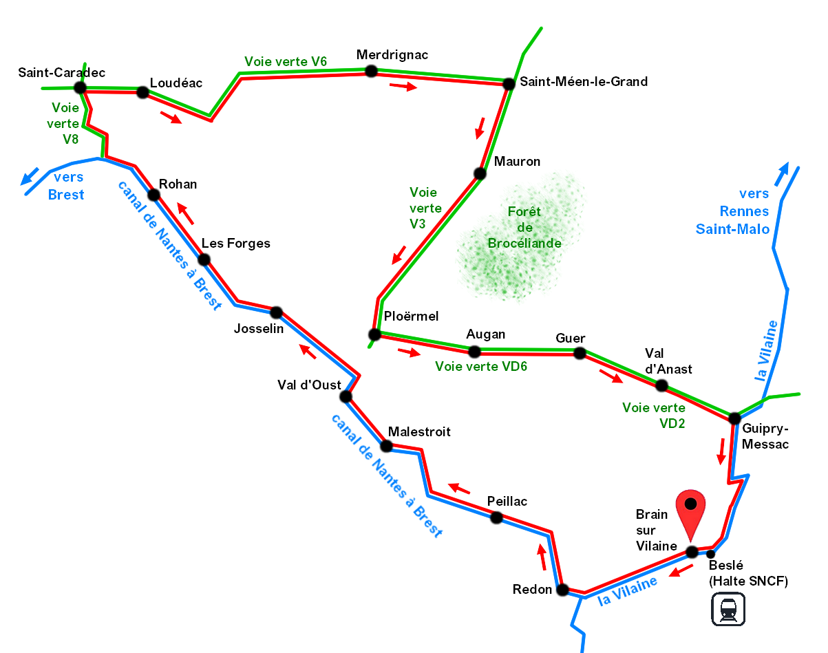 | 0 | Brain-sur-Vilaine | 81 | Josselin | 250 | Ploërmel |