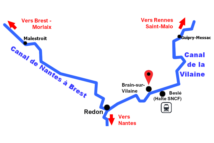- Idéal si vous arrivez en train à Redon, ou à la halte SNCF de Beslé